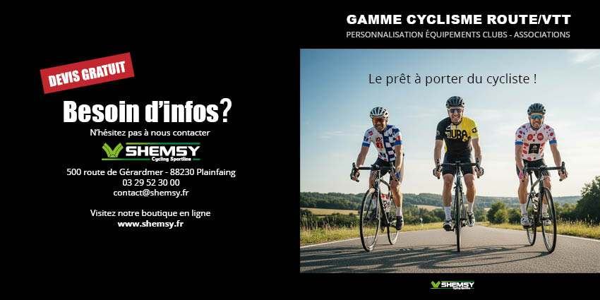 Shemsy spécialiste en personnalisation textile par sublimation depuis 1988, découvrez ici quelques exemples d’articles sublimés en cyclisme et Paintball. Pour plus d’informations, n’hésitez pas à nous contacter