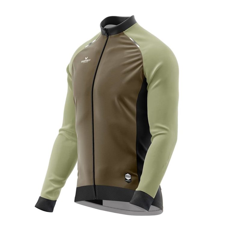 Maillot cycliste mi-saison Mixte GOLDEN CHILL Marron/Vert