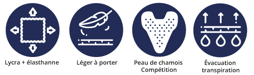 Ce tableau vous explique comment déterminer votre taille de votre cuissard, collant ou corsaire. Munissez-vous d’un ruban de couture pour déterminer vos mensurations exactes.