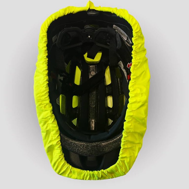Couvre-casque Fluo avec réfléchissantes latérales de chaque côté et une à l’arrière, entièrement imperméable. Taille unique adaptable sur la grande majorité des casques, cordon d’ajustement si besoin.