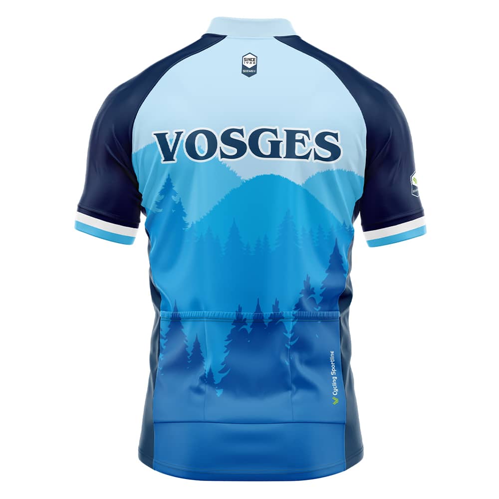 Nous sommes une marque Française mais avant tout Vosgienne ! Découvrez le nouveau maillot de vélo au design évoquant nos belles montagnes Vosgiennes, disponible en manches courtes et 3 poches au dos. Une bande siliconée est disposée au bas du maillot pour une tenue parfaite, zip intégral blanc.