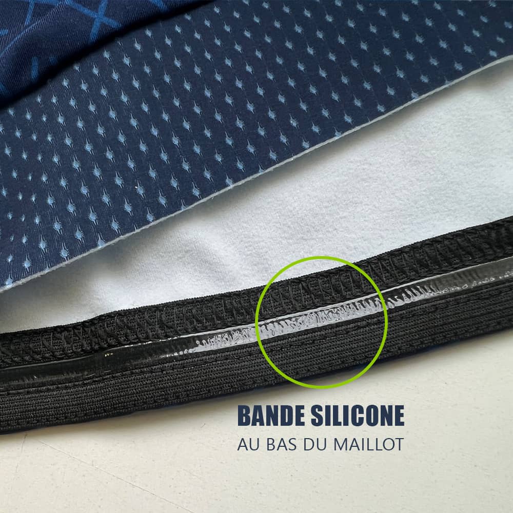 - Bande siliconée avec élastique au bas du maillot pour un maintien optimal
