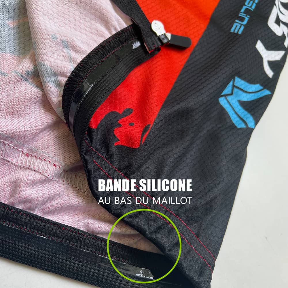 - Bande siliconée avec élastique au bas du maillot pour un maintien optimal