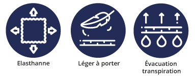 - Tissu 100% polyester avec élasthanne