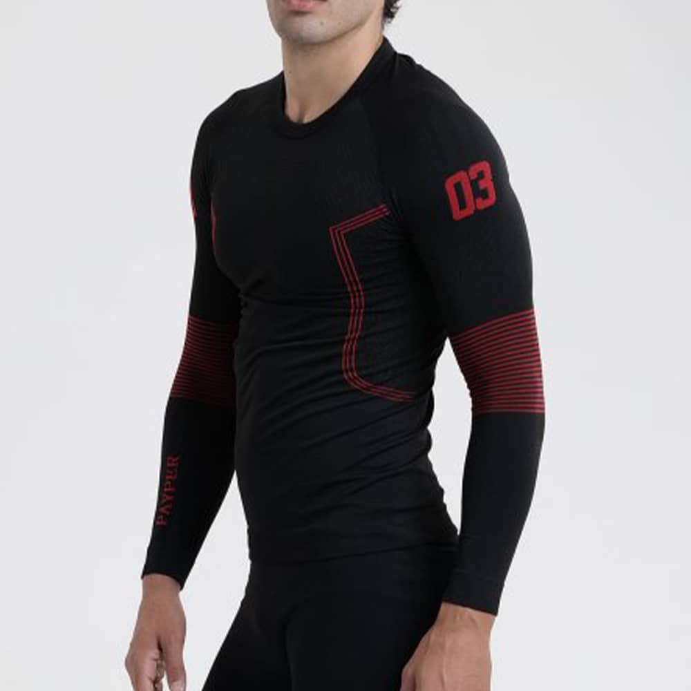 Sous-maillot thermique sport Pro 280 homme, encolure ras le cou, manches longues raglan, tissu souple et élastique 280gr/m2. Coloris noir